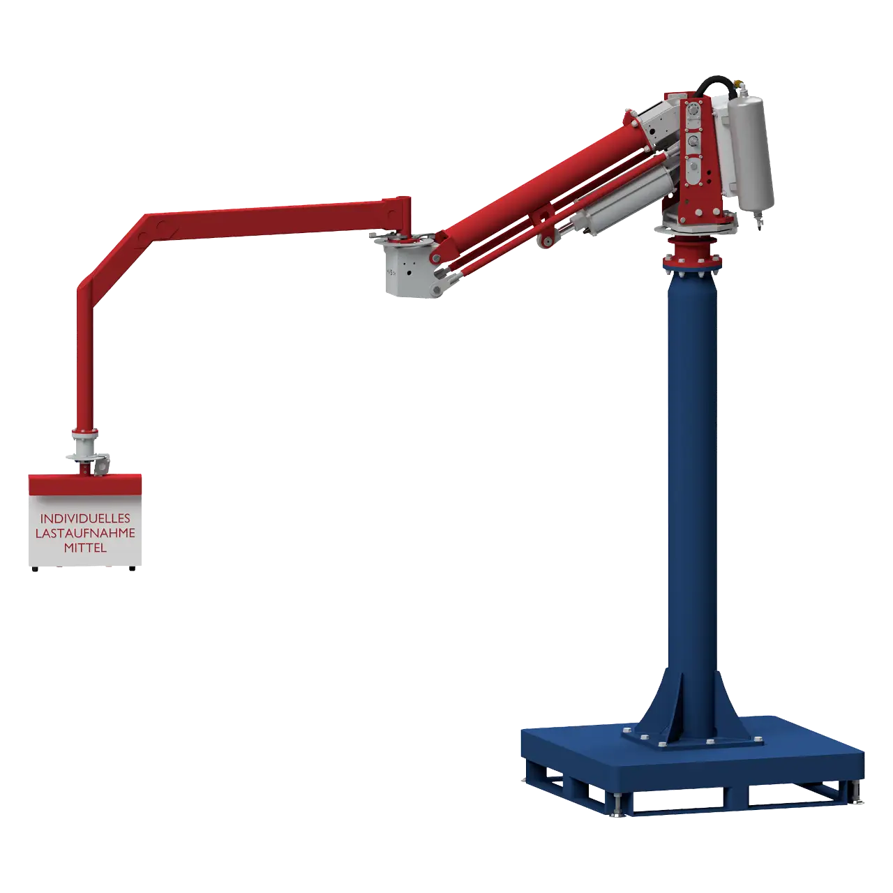 Die HUSCH Handhabungstechnik entwickelt und produziert Knickarmmanipulatoren mit Parallelführungssystem für den Hub, welche mit einer Standsäule am Boden befestigt werden können.